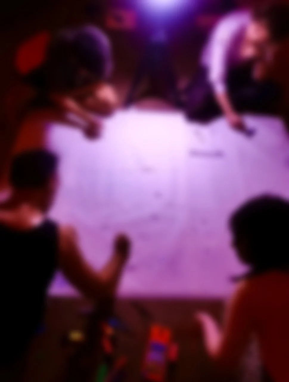 These videos are live-stream visuals captured at the event and projected onto the ceiling during the dance. They are recordings of the live VJ effect station placed in one station of the event, along with the drawings.